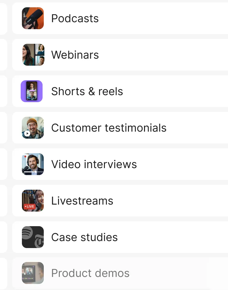 Ein Studio, mit dem du im Handumdrehen hochwertige Inhalte erstellst und sie ganz einfach in Clips, Posts und mehr verwandelst – schneller geht’s nicht.