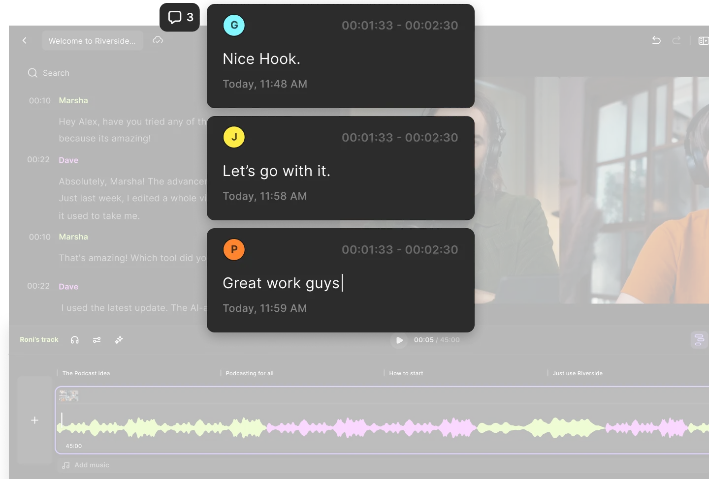 „Mit Riverside wird die Nachbearbeitung zum Kinderspiel. Du hast deinen Livestream in Top-Qualität aufgenommen, kannst daraus Clips schneiden, ihn in einen Podcast verwandeln und mit Show Notes eine noch größere Reichweite erzielen."