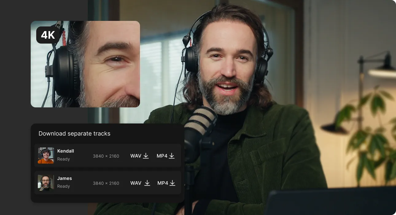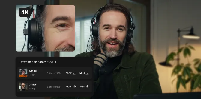 Mit der lokalen Aufnahme bekommst du bei Riverside immer Aufnahmen in bester Qualität – egal, wie stabil deine Internetverbindung gerade ist.