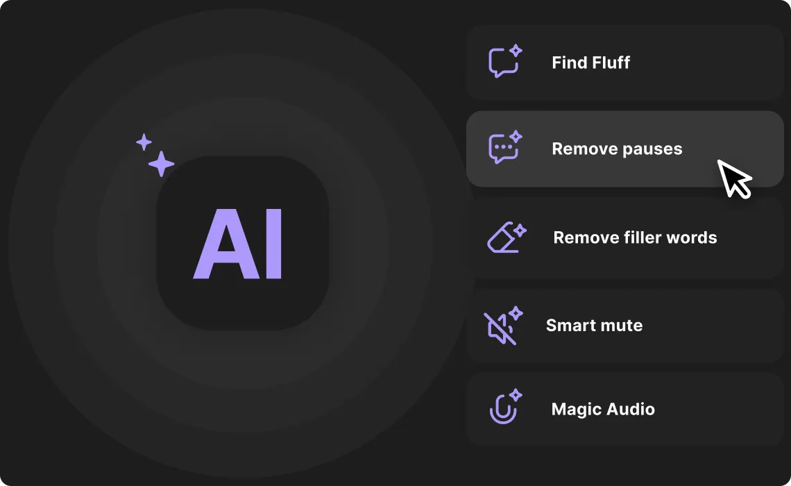 Spare mit KI Zeit bei der Bearbeitung, um das Audio zu verbessern, Stille und Füllwörter herauszufiltern – für ein professionelles Ergebnis.