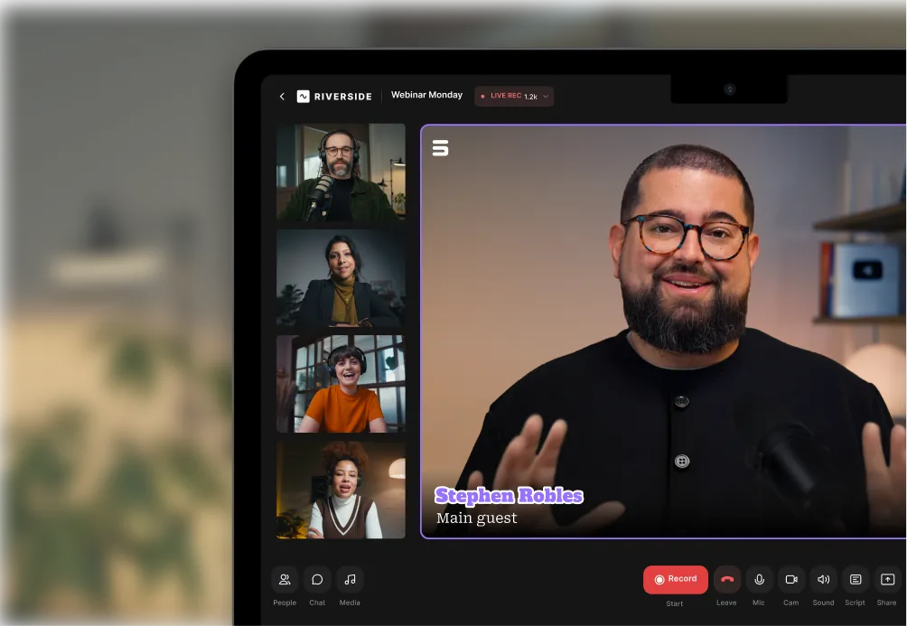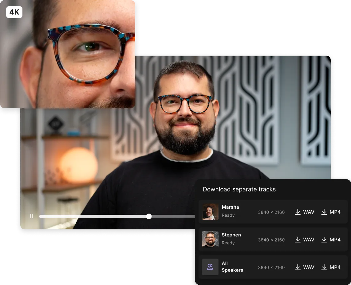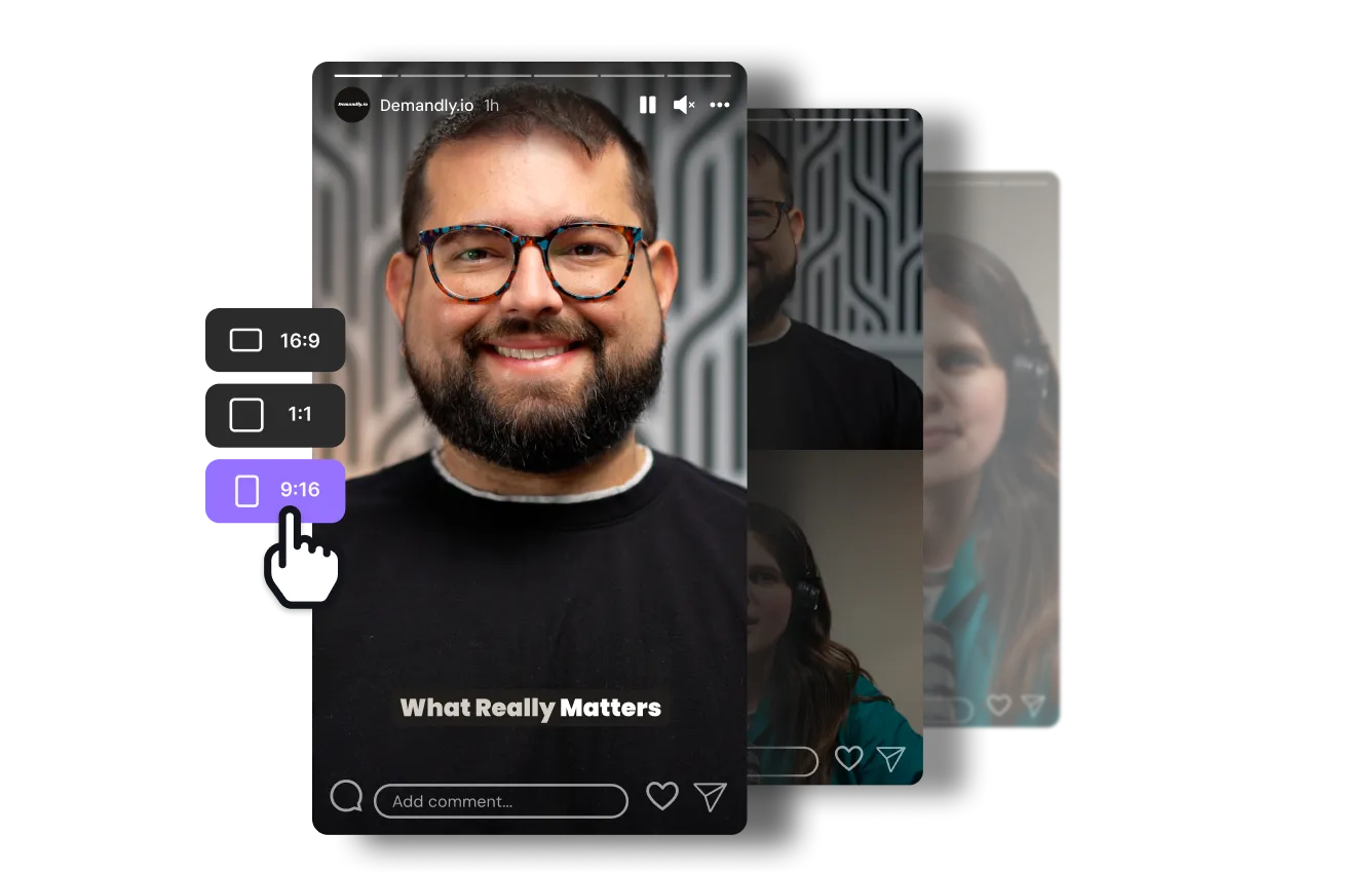 Aufzeichnungen sind alle in der Cloud, bereit für den integrierten Editor und viele KI-Tools, sodass Du und Dein Team zusammenarbeiten könnt, um Inhalte in jeder Form und Größe umzuwandeln – 16:9, 9:16 oder 1:1.