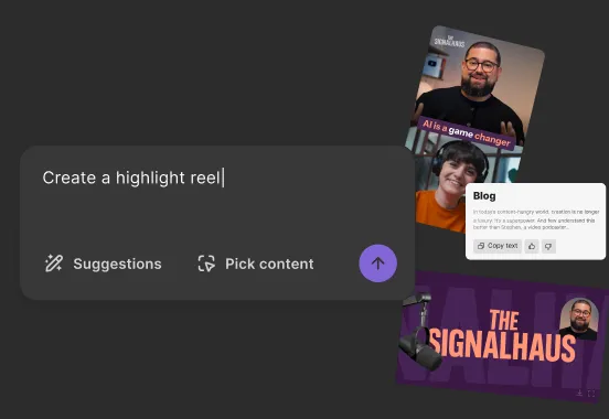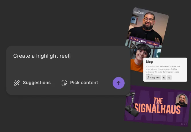 Turn your content into endless promotional assets, like clips, blog posts, social media content, and more