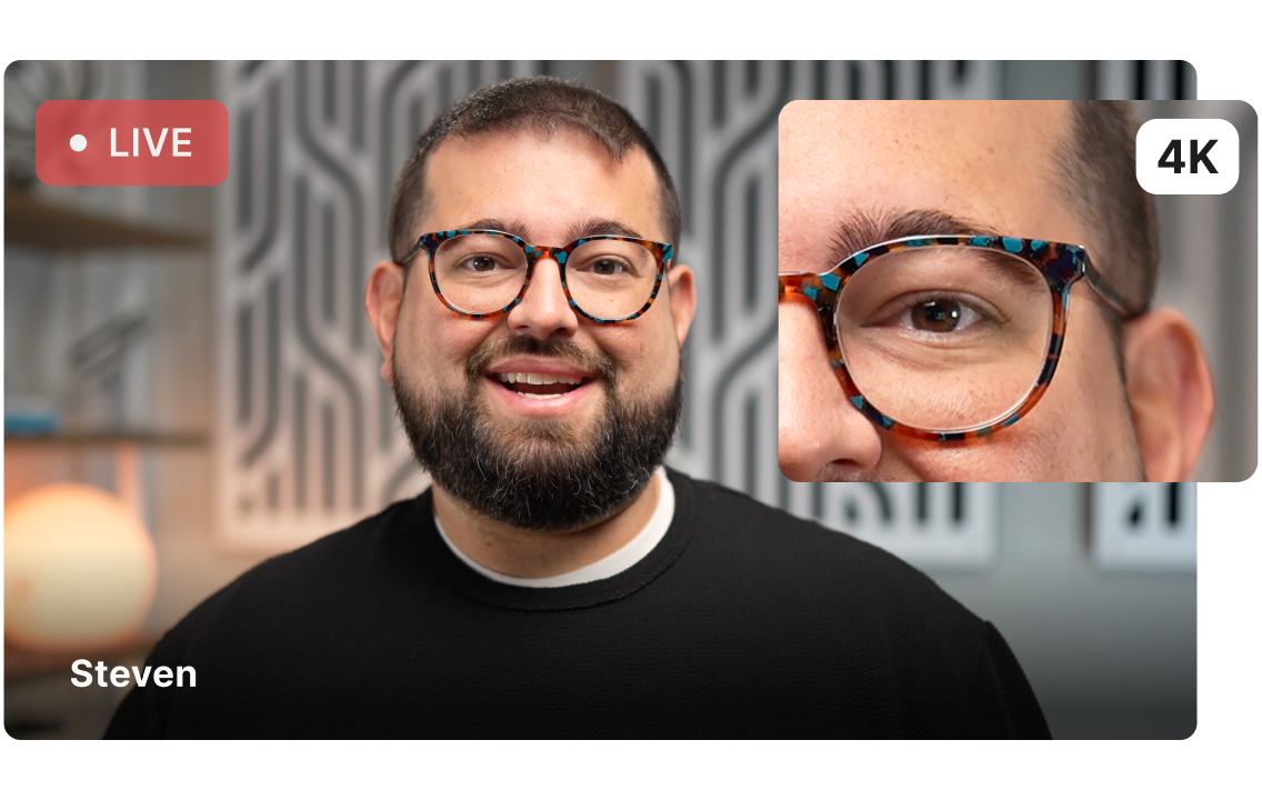 Go live in 1080p HD. All while recording in up to 4K uncompressed resolution. Every detail, every word, in studio quality.