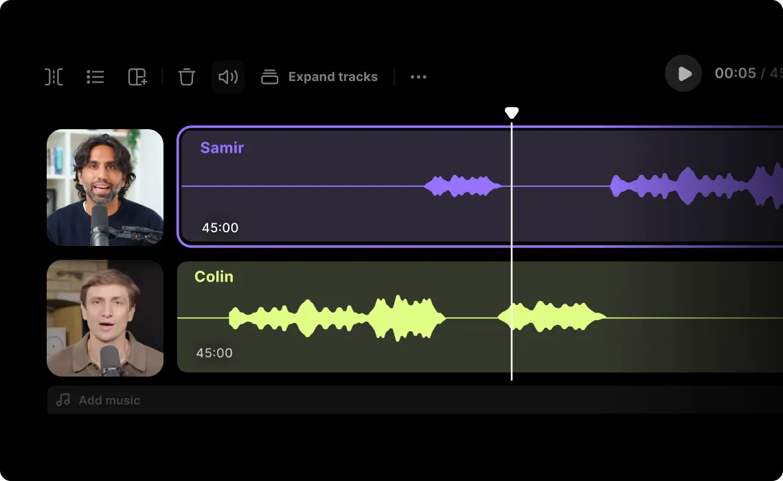Edit each track individually for ultimate control—eliminate crosstalk, adjust volumes, and more for an engaging and professional result.