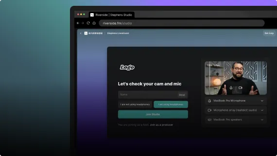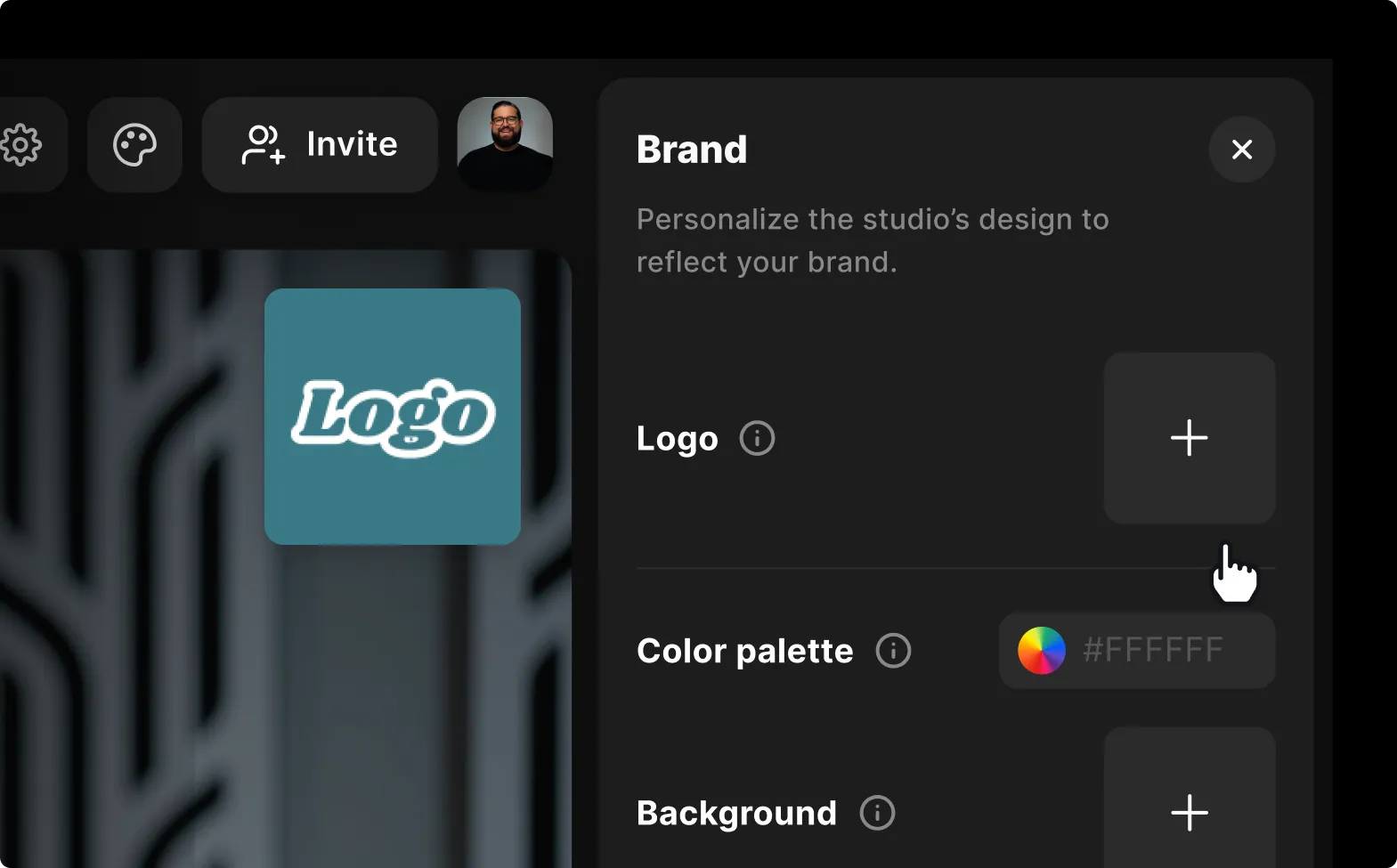 Show off your brand in all its glory during live sessions or while recording, by customizing, designing, and styling every element in your studio. Your very own, professional studio.