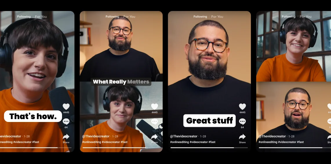 Combine multiple high-performing clips into one snappy “best moments” video. Adjust aspect ratios and add captions to create scroll-stopping, social-ready content.