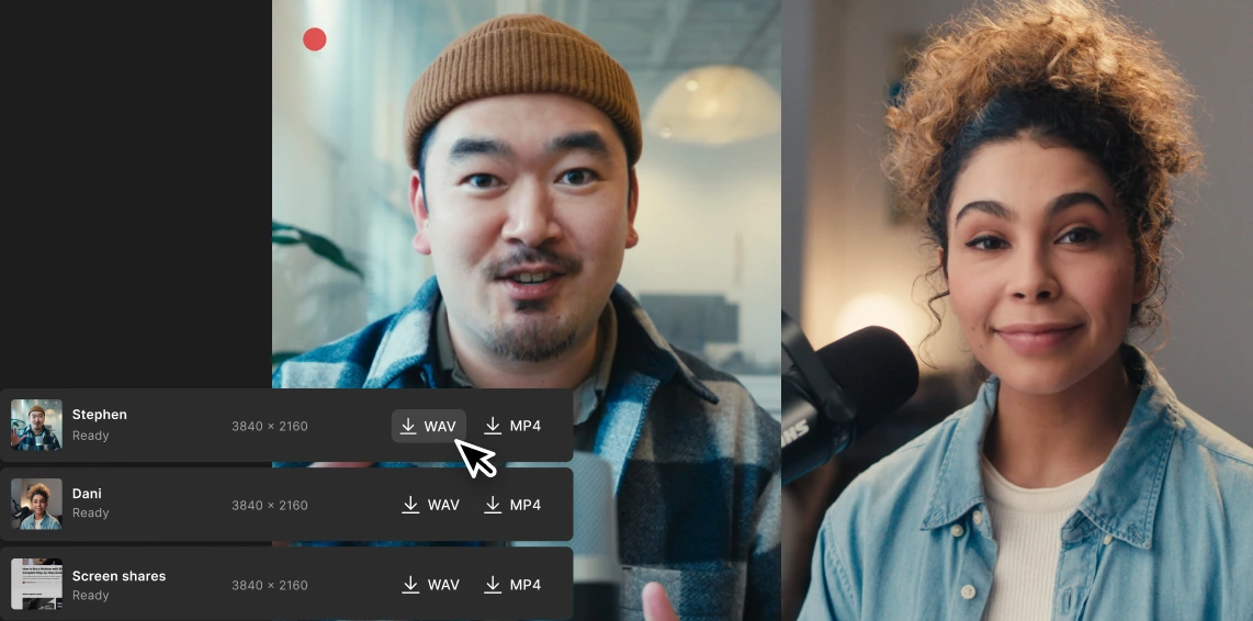 Pick a tool that offers separate tracks so you can edit each participant’s audio and video individually.