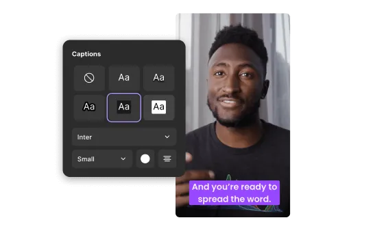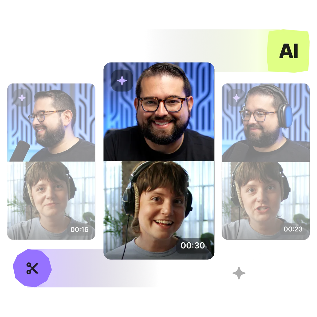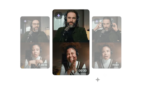 Editing the conversation is easier with color-coded speakers. Change layouts using AI speaker view, style and add captions, and swap format sizes. Then, turn your recording into shareable clips with Magic Clips.