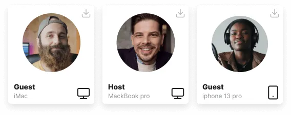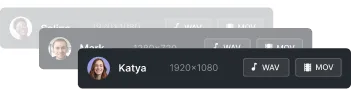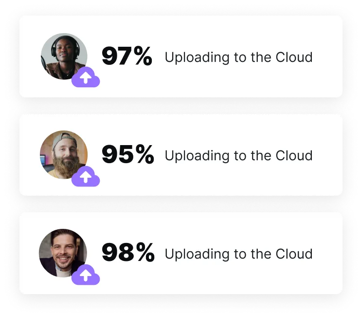 Riverside continuously uploads everyone’s audio and video during recording to the cloud, so when it ends you can download the files in seconds. No need anymore to rely on your guest with sending files in many unclear or low quality ways.